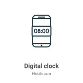 Zdjęcie "ikonę wektora zegara cyfrowego. na białym tle prosty element linii ilustracji z koncepcji aplikacji mobilnej. możliwość edycji wektorowej ikony zegara cyfrowego na białym tle" może być wykorzystywane do celów osobistych i komercyjnych zgodnie z warunkami zakupionej licencji Royalty-free. Obraz jest dostępny do pobrania w jakości wysokiej rozdzielczości do 5760x3840.