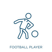 piłkarz z ikoną piłki wektorowej. na białym tle Prosta ilustracja element linii od sportu koncepcji. edytowalny wektor skok piłkarz z ikoną piłki na białym tle