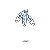 kontur ikona wektor grochu. na białym tle prosty element linii ilustracji z owoców i warzyw koncepcji. ikona grochu wektor można edytować na białym tle