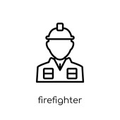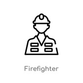 zarys strażak pracy wektor ikona. na białym tle prosty element linii ilustracji od ludzi koncepcji. ikona do edycji wektor udar strażak działa na białym tle