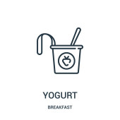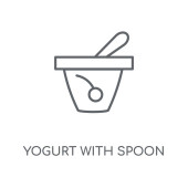 zarys jogurt z ikoną wektor łyżki. na białym tle prosty element linii ilustracji z Bistro i restauracji koncepcji. edytowalny wektor skok jogurt z ikoną łyżki na białym tle
