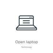 zarys otwartej ikony wektora laptopa. na białym tle prosty element linii ilustracji z koncepcji technologii. wektor do edycji Otwórz ikonę laptopa na białym tle