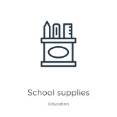ikona wektora materiałów szkolnych. na białym tle prosty element linii ilustracji z koncepcji edukacji. edytowalny wektor udar ikona zaopatrzenie Szkoła na białym tle