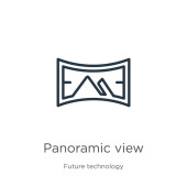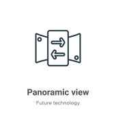 zarys ikony wektorowej widoku panoramicznego. na białym tle linii prostej ilustracji od koncepcji przyszłej technologii. edytowalny wektor Stroke widok panoramiczny ikona na białym tle