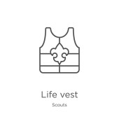 zarys życia kamizelka wektor ikona. na białym tle prosty element linii ilustracji z koncepcji alertu. ikona kamizelka życia edytowalne wektor na białym tle