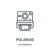 Polaroid ikona wektora kamery. na białym tle prosty element linii ilustracji z koncepcji sprzętowej. Polaroid ikona kamery edytowalny wektor na białym tle