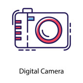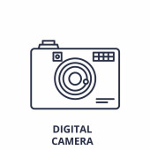 ikony wektorowej aparatu cyfrowego. na białym tle prosty element linii ilustracji z elektronicznego pojęcia wypełnienia. edytowalny wektor ikona aparatu cyfrowego na białym tle