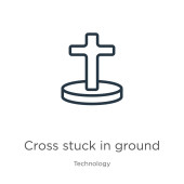 zarys krzyż zatrzymany w ziemi ikona wektora. na białym tle prosty element linii ilustracji z koncepcji technologii. edytowalny wektor skok krzyż zatrzymany w ziemi ikona na białym tle