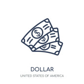 zarys amerykańskiego dolara ikona wektor. na białym tle Prosta ilustracja elementu linii z koncepcji biznesowej. ikona amerykański Dolar skok wektor na białym tle
