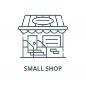 zarys małego sklepu z markiza ikona wektora. na białym tle Prosta ilustracja elementu linii z koncepcji biznesowej. edytowalny wektor skok mały sklep z ikoną markizy na białym tle