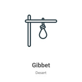 zarys gibet ikona wektora. wyizolowany czarny prosty element linii ilustracji z dzikiego zachodu koncepcji. edytowalny wektor Stroke ikona szubienicy na białym tle