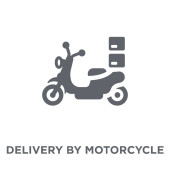zarys dostawy za pomocą ikony wektora motocykla. odizolowany czarny prosty element linii ilustracji od koncepcji dostawy i logistyki. edytowalny wektor skoku za pomocą ikony motocykla na białym