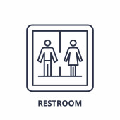kontur ikony wektora toalety. na białym tle prosty element linii ilustracji z koncepcji Muzeum. edytowalny wektor udar ikona toalety na białym tle