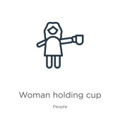 zarys kobieta trzyma ikona wektor filiżanki. na białym tle prosty element linii ilustracji od ludzi koncepcji. ikona kobieta miseczka przytrzymanie na białym tle wektor