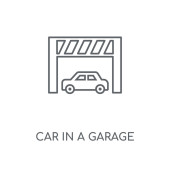 kontur samochodu w ikonie wektora garażu. na białym tle prosty element linii ilustracji od mechanicons koncepcji. edytowalny wektor obrysu samochodu w ikonę garażu na białym tle
