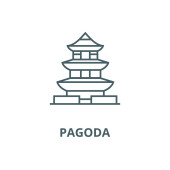 zarys ikony wektor Pagoda. na białym tle prosty element linii ilustracji z koncepcji budynków. edytowalne wektor skok Pagoda ikona na białym tle