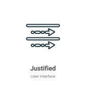 Zdjęcie "Konspekt uzasadniają ikonę wektora. na białym tle prosty element linii ilustracji z koncepcji interfejsu użytkownika. edytowalny wektor obrysu wyjustować ikonę na białym tle" może być wykorzystywane do celów osobistych i komercyjnych zgodnie z warunkami zakupionej licencji Royalty-free. Obraz jest dostępny do pobrania w jakości wysokiej rozdzielczości do 5760x3840.