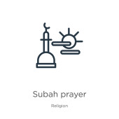 zarys Subah modlitwa ikona wektor. na białym tle Prosta ilustracja element linii z religii-2 koncepcji. ikona modlitwa Subah edytowalne wektor na białym tle