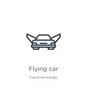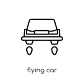 zarys latający samochód wektor ikona. na białym tle linii prostej ilustracji od koncepcji przyszłej technologii. ikona latający samochód edytowalny wektor na białym tle