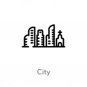zarys ikony wektora miejskiego. na białym tle prosty element linii ilustracji z koncepcji budynków. ikona miejski skok wektor na białym tle