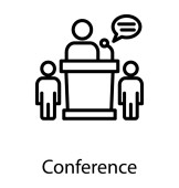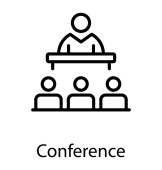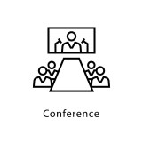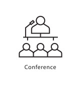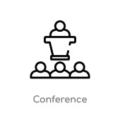 zarys ikony wektorowej konferencji. na białym tle prosty element linii ilustracji z Social Media Marketing koncepcji. edytowalne wektor Stroke ikona konferencji na białym tle