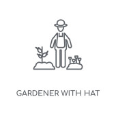 zarys ogrodnik z ikoną wektora kapelusza. na białym tle proste ilustracja element linii od człowieka koncepcji. edytowalny wektor udar ogrodnik z ikoną kapelusza na białym tle