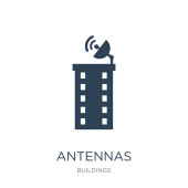 zarys budynku z ikoną anteny wektorowej. na białym tle prosty element linii ilustracji z koncepcji budynków. edytowalny wektor obrysu budynku z ikoną anteny na białym tle