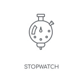 zarys stopera działa ikona wektora. na białym tle prosty element linii ilustracji z koncepcji technologii. edytowalny wektor skok stoper działa ikona na białym tle