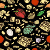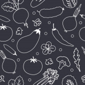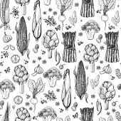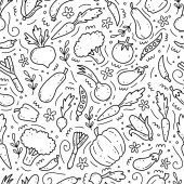 Graficzny czarny biały wzór warzyw. Rysunek ręczny. Bezszwowy wzór do dekorowania różnych powierzchni.