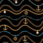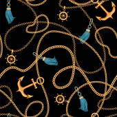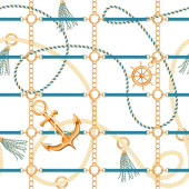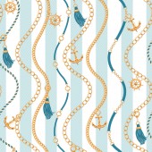 Zdjęcie "Kratka bez szwu ze złotymi łańcuchami, kotwica, koło statku, frędzle i liny." może być wykorzystywane do celów osobistych i komercyjnych zgodnie z warunkami zakupionej licencji Royalty-free. Obraz jest dostępny do pobrania w jakości wysokiej rozdzielczości do 5760x3840.