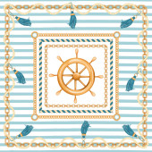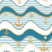 Kratka bez szwu ze złotymi łańcuchami, kotwica, koło statku, frędzle i liny.
