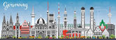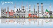 Witamy w Europie Skyline z szarymi budynkami i błękitnym niebem.
