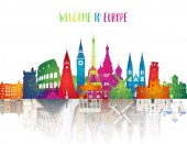Zdjęcie "Witamy w Europie Skyline z szarymi budynkami i błękitnym niebem. " może być wykorzystywane do celów osobistych i komercyjnych zgodnie z warunkami zakupionej licencji Royalty-free. Obraz jest dostępny do pobrania w jakości wysokiej rozdzielczości do 5760x3840.