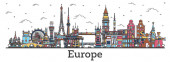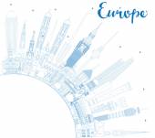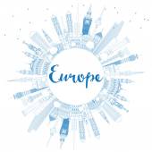Zdjęcie "Zarys Witamy w Europie Skyline z niebieskimi budynkami. " może być wykorzystywane do celów osobistych i komercyjnych zgodnie z warunkami zakupionej licencji Royalty-free. Obraz jest dostępny do pobrania w jakości wysokiej rozdzielczości do 5760x3840.