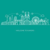 Zdjęcie "Zarys Witamy w Europie Skyline z niebieskimi budynkami. " może być wykorzystywane do celów osobistych i komercyjnych zgodnie z warunkami zakupionej licencji Royalty-free. Obraz jest dostępny do pobrania w jakości wysokiej rozdzielczości do 5760x3840.