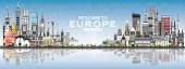 Witamy w Francja Skyline z Gray budynki, Błękitne niebo i refl