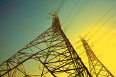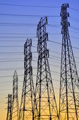 wieże transmisji energii na tle nieba