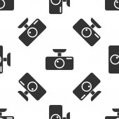 Szary samochód DVR ikona na białym tle bez szwu wzór. Ikona cyfrowego rejestratora wideo samochodu. Ilustracja wektorowa