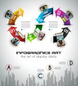 Wzór infograficzny z papierowymi tagami.