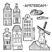 Wektor ilustracji cute domów. Amsterdamskie ikony ulic