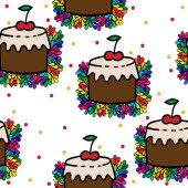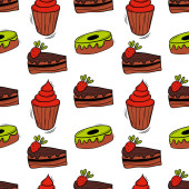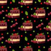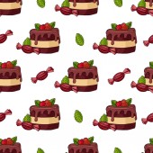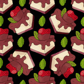 Bezszwowy wzór z ciastem z izolat z liści truskawek i mięty