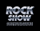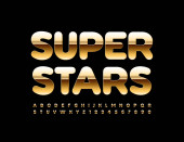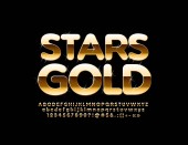 Vector złoty plakat Rock Star. Luksusowa czcionka musujące. Elitarne litery alfabetu, cyfry i symbole z brokatem