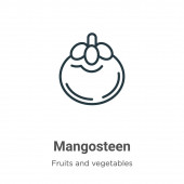 mangostan wektor ikona z kolekcji owoców. Cienka linia mangostan kontur ikona wektor ilustracji. Zarys, cienka linia mangostan ikona do projektowania stron internetowych i mobilnych, tworzenie aplikacji.