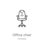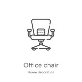 wektor ikona krzesło z kolekcji sprzętu biurowego. Cienka linia krzesło kontur ikona ilustracja wektor. Zarys, cienka linia krzesło ikona do projektowania stron internetowych i mobilnych, tworzenie aplikacji.