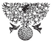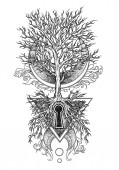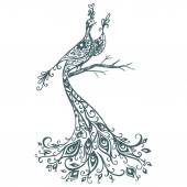 Stylowa ilustracja wektorowa drzewa z dwoma ptakami. Rysunek wykonany do tatuażu lub nadruku na koszulce