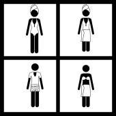 Kreskówka z nagie kobieta z piersi, Groin, krocze lub narządów płciowych objętych wszystkich ludzi są nago pod ich ubrania znak