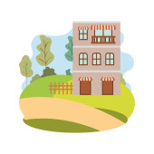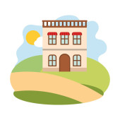 Domy Sąsiedzki w krajobraz na białym tle ikona
