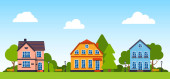 Domy Sąsiedzki w krajobraz na białym tle ikona