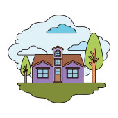 Domy Sąsiedzki w krajobraz na białym tle ikona