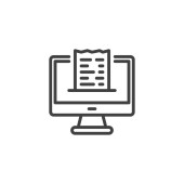Monitor komputerowy z książką, ikona linii edukacji online.